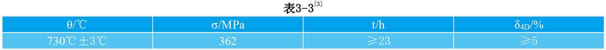 GH145(GH4145)棒材、锻材和环形件标准规定的持久性能见表3-3。