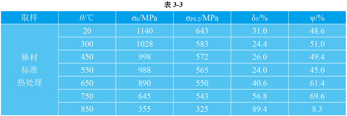 3.2.6.1 棒材不同温度的拉伸性能见表3-3