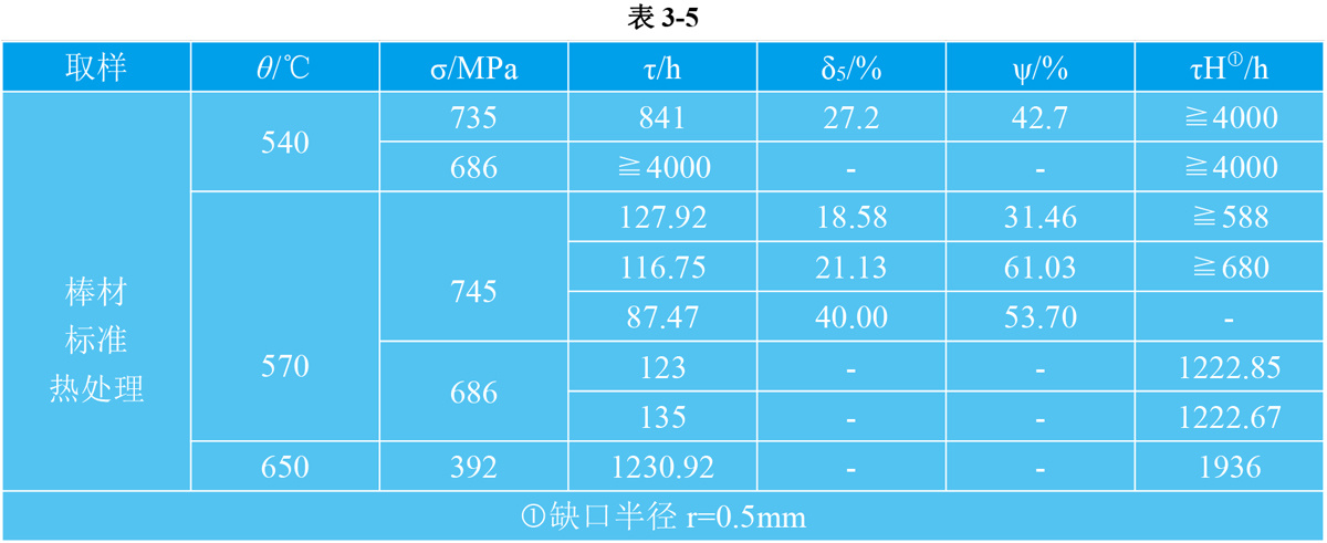 3.3.1.1 棒材不同温度的光滑和缺口持久性能见表3-5