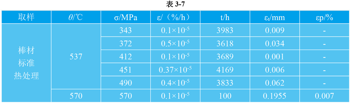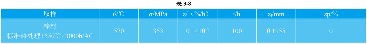 3.3.2.3 棒材经550℃×3000h时效,570℃的蠕变性能见表3-8
