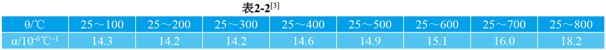 2.1.3 GH159线膨胀系数 见表2-2(冷拔+时效状态)。