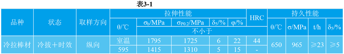 GH159技术标准规定的性能 见表3-1。