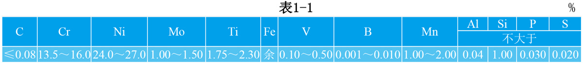 1.4 GH132 化学成分 GH132合金化学成分见表1-1,优质GH132合金化学成分见表1-2。
