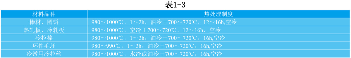 1.5 GH132 热处理制度 材料标准规定的GH132热处 理制度见表1-3;优质GH132热处理制度为900℃±10℃,1~2h,油冷+750℃±10℃,16h,空冷。