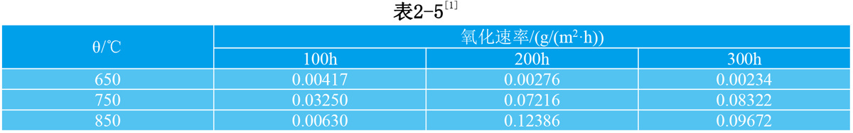 2.5.1 GH132抗氧化性能 合金在空气介质中试验100~300h后的氧化速率见表 2-5。