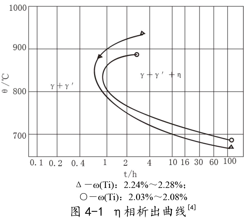 η相形成的温度区间约在700~900℃之间,析出温度与合金Ti含量相关。