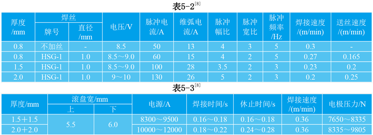 5.2.3 缝焊规范见表5-3。