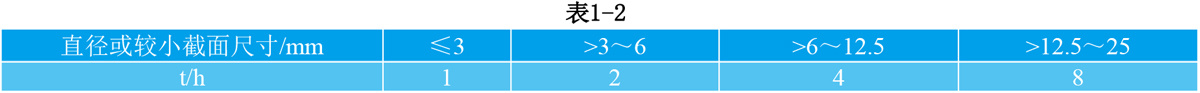 1.5.1 GH90冷拉棒材:1080℃±10℃,保温时间见表1-2,空冷或水冷+750℃±10℃,4h,空冷。