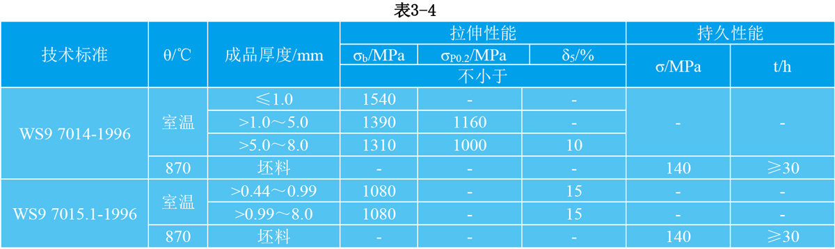 3.1.3 GH90冷轧薄板和带材(硬态)技术标准规定的性能见表3-3。