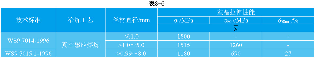 3.1.4 GH90弹簧用丝材技术标准规定的性能见表3-4。