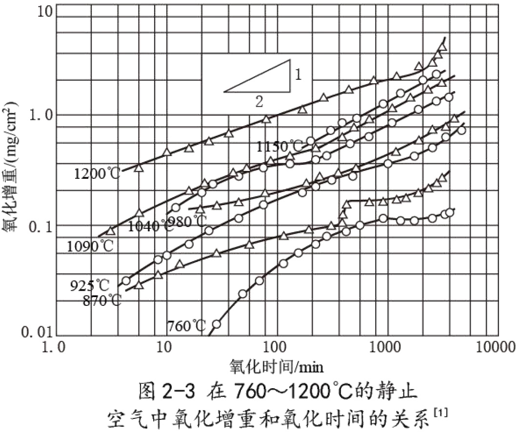 2.5.1.2 GH605在760~1200℃的静止空气中作抗氧化试验时的氧化增重见图2-3。
