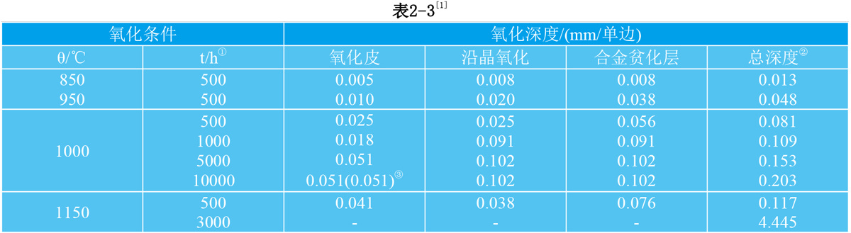 2.5.1.3 GH605在静止空气中作抗氧化试验时的氧化深度见表2-3。