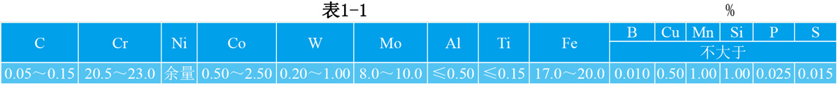 1.2 GH536 相近牌号 UNS NO6002,HastelloyX(美国),NC22FeD(法国), NiCr22FeMo(德国),Nimonic PE13(英国)