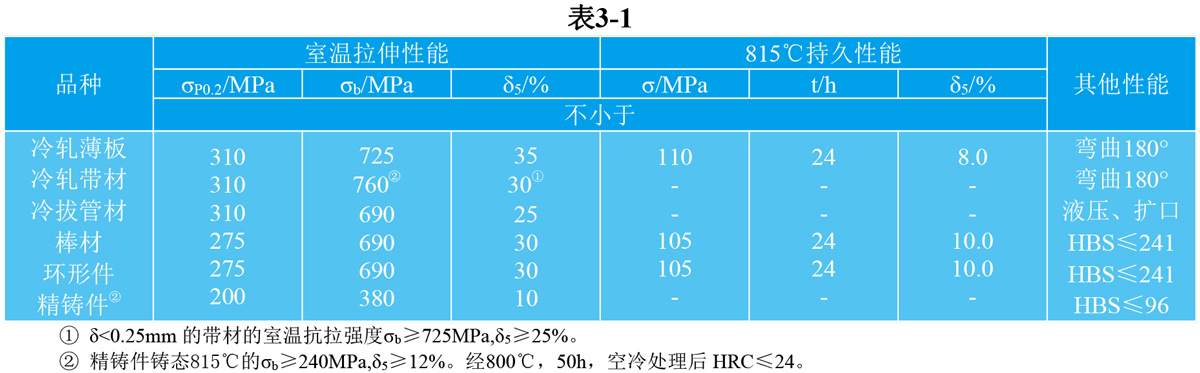 GH536技术标准规定的不同品种的力学性能见表3-1。