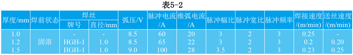 5.2.2 GH536自动钨极脉冲氩弧焊对接规范见表5-2。
