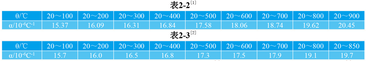 2.1.3 Incoloy A-286线膨胀系数 Incoloy A-286线膨胀系数见表2-2;优质Incoloy A-286线膨胀系数见表2-3