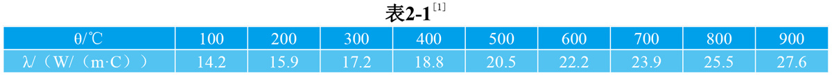 2.1.2 Incoloy A-286 热导率 见表2-1。