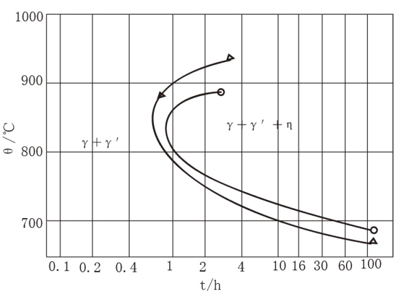 4.2 时间-温度-组织转变曲线 Incoloy A-286合金中η-Ni3Ti相的析出动力学曲线见图4-1。