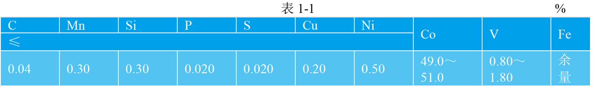 1.1 1J22材料牌号 1J22(Co50V2)。