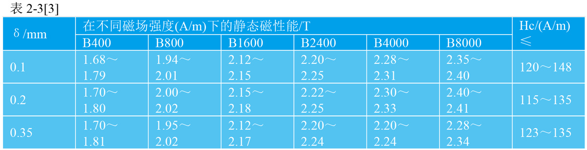 2.4.3.1 1J22不同厚度的典型静态磁性能见表2-3。