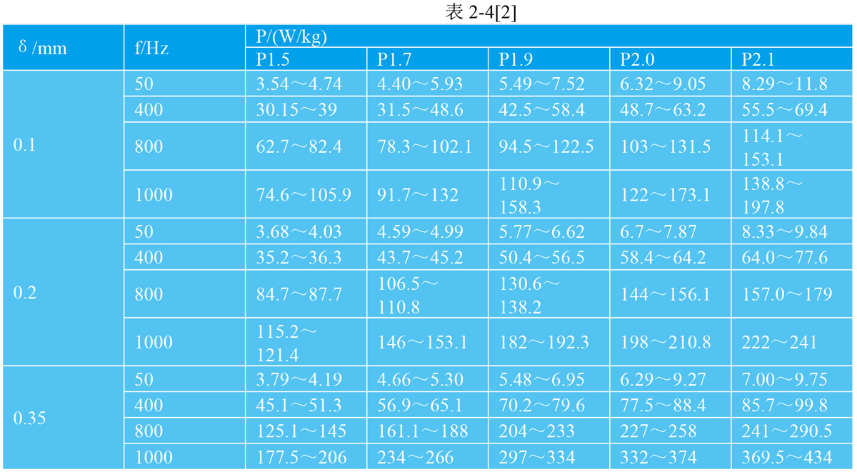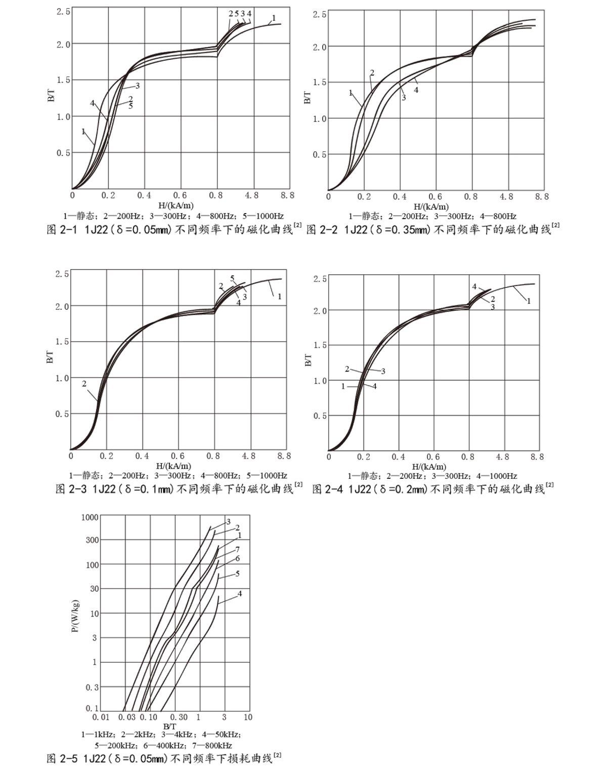 2.4.3.2 1J22不同厚度的铁损见表2-4。