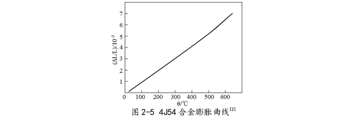 2.1.4 4J54线膨胀系数 标准规定的合金平均线膨胀系数见表2-1。合金的平均线膨胀系数见表2-2。合金的膨胀曲线见图2-5。