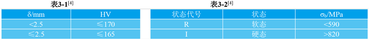 3.1.2 4J54抗拉强度 合金带材的抗拉强度应符合表3-2的规定。