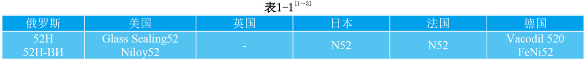 1.2 4J52相近牌号 见表1-1。