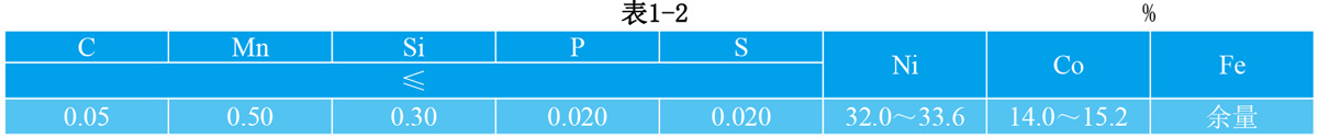在平均线膨胀系数达到标准规定条件下,允许镍、钴含量偏离表1-2规定范围。