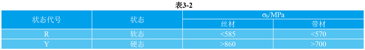 3.1.2 4J33抗拉强度 丝材和带材的抗拉强度应符合表3-2的规定。