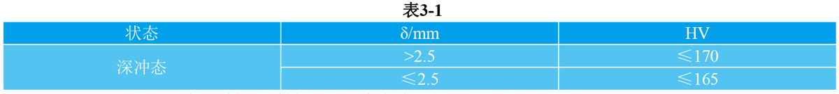 3.1.1 4J33硬度 深冲态带材的硬度应符合表3-1的规定。厚度不大于0.2mm的带材不做硬度检验。