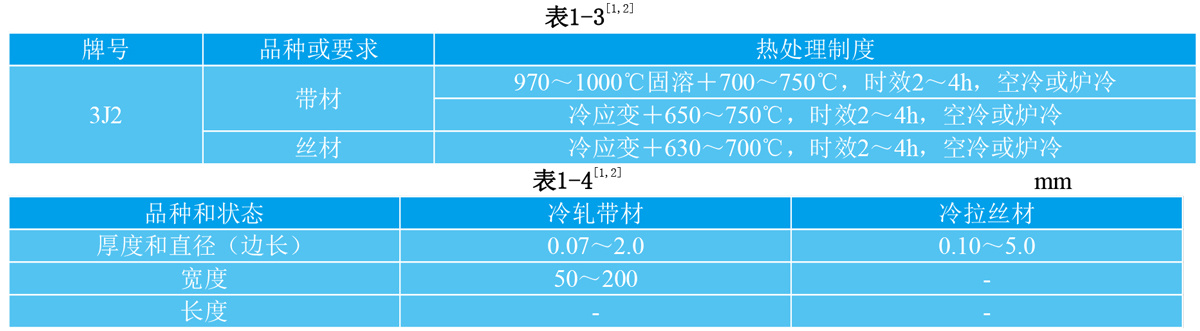 1.3 3J2材料的技术标准 3J2合金按企业标准或临时技术协议供货。
