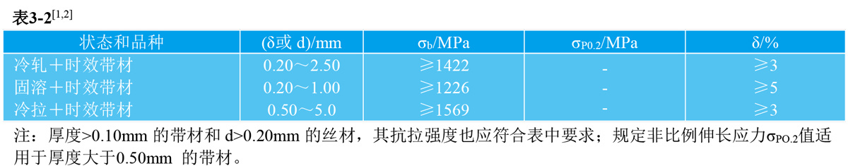 时效处理:合金经时效处理后获得高的力学性能和弹性性能。应根据时效前的合金品种、状态和使用性能等因素合理选择时效处理制度(见1.5)。
